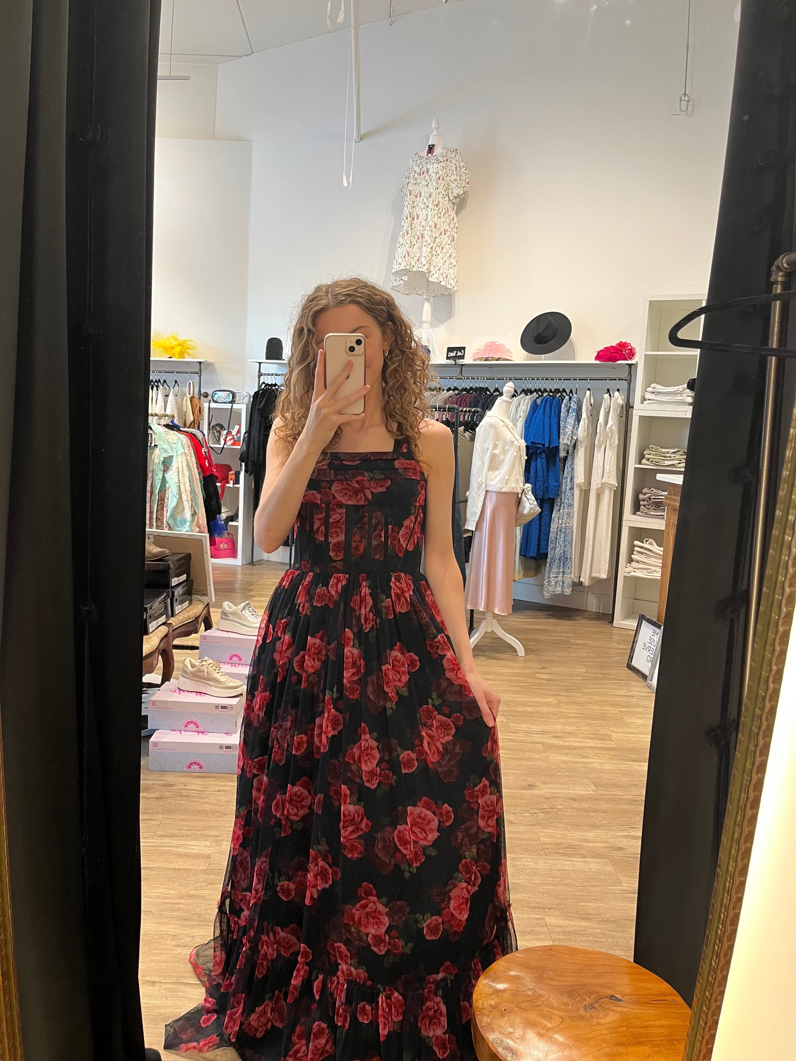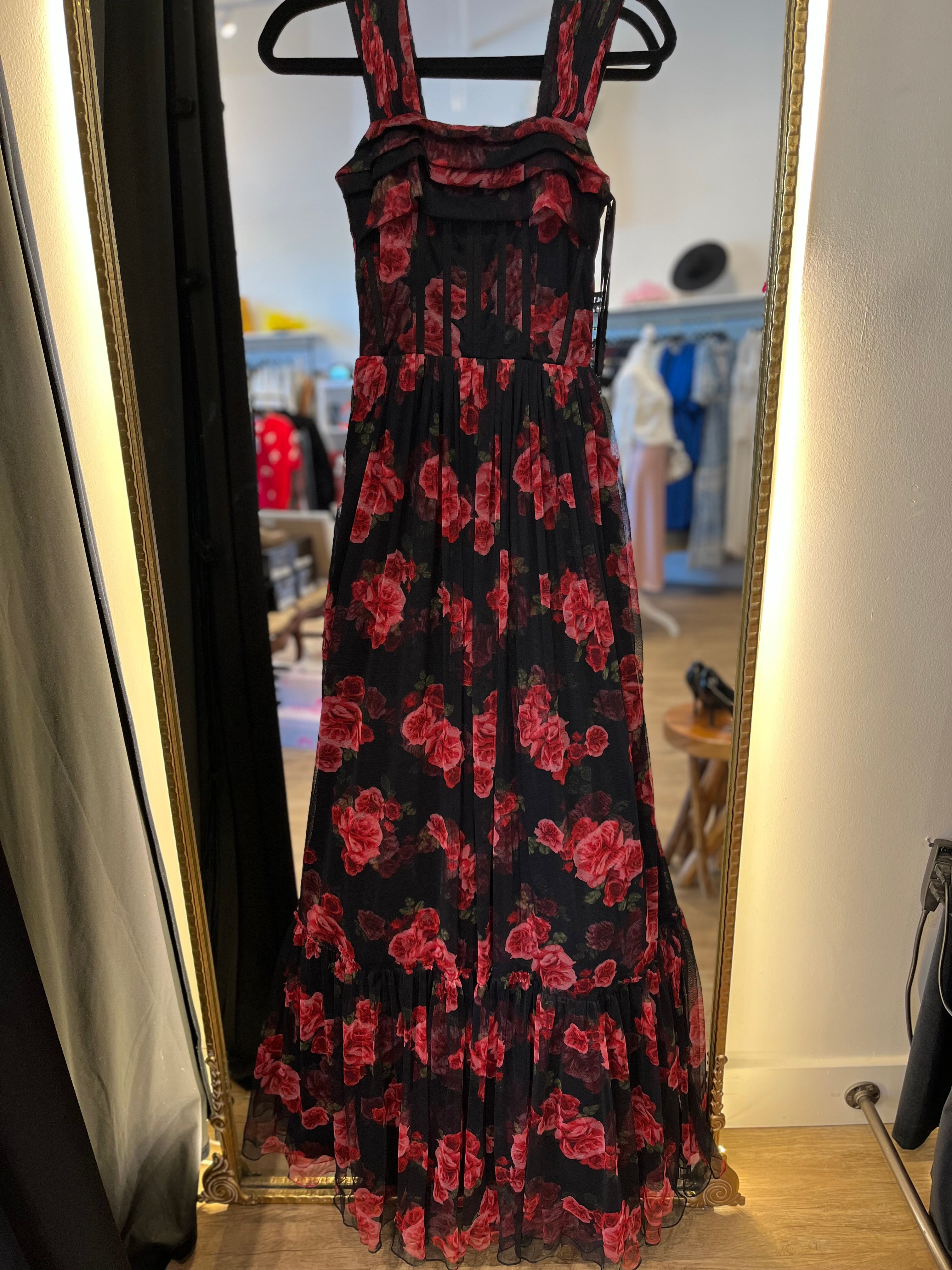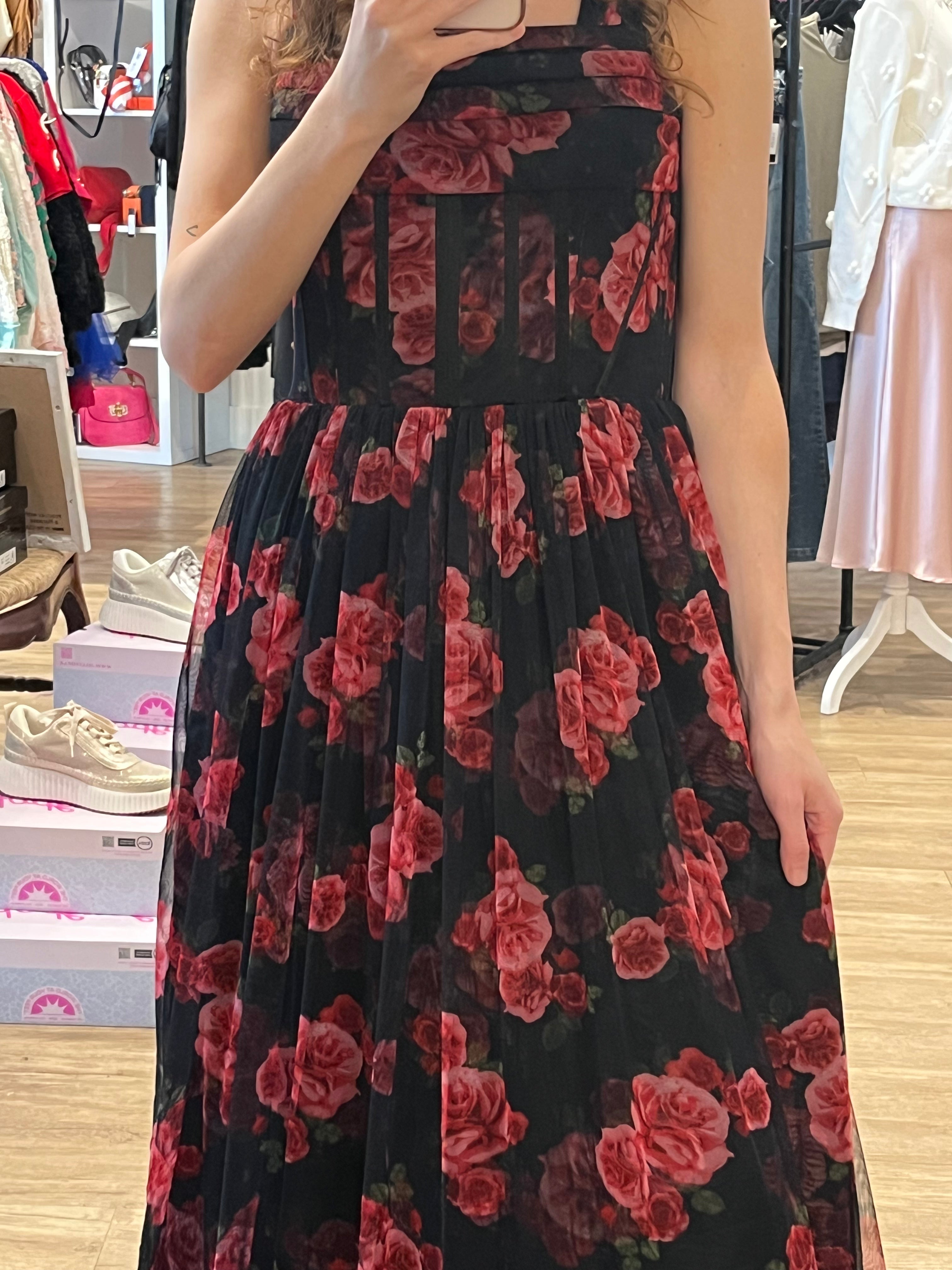 Indulge in pure sophistication with our Heidi Formal Dress. The corset top provides a flattering fit, while the elegant rose pattern adds a touch of romance. Perfect for any formal occasion, this long dress will make you feel like a work of art.