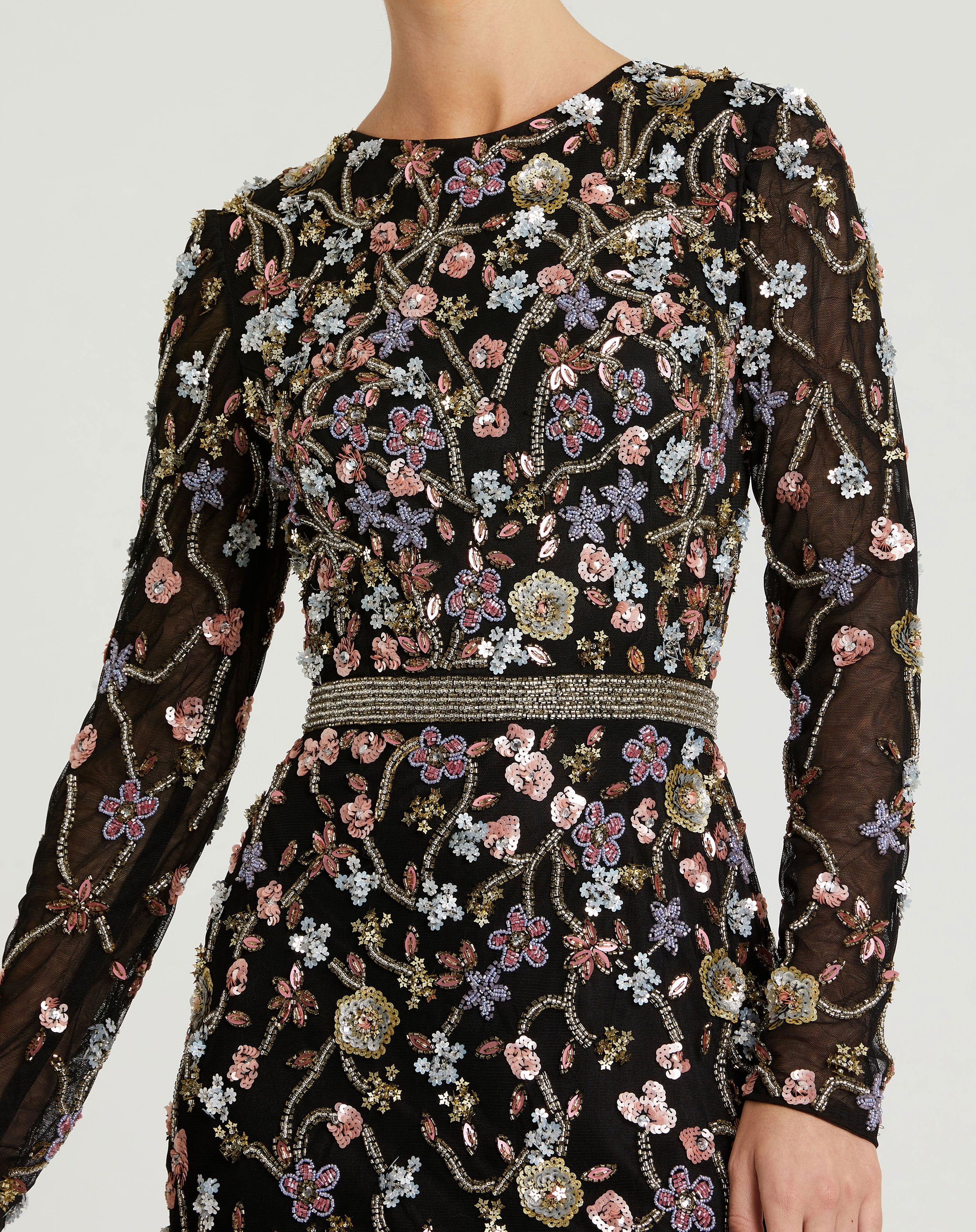 Elevate your style with the Valentina Black Floral Dress. Adorned with intricate floral accents in a variety of colors, this dress exudes luxury. The stunning golden waistband adds a touch of elegance, while the long sleeves and back zipper make it perfect for any high-end event. Experience the ultimate in sophistication with this dress. This dress is also fully lined to ensure a modest and elegant look.