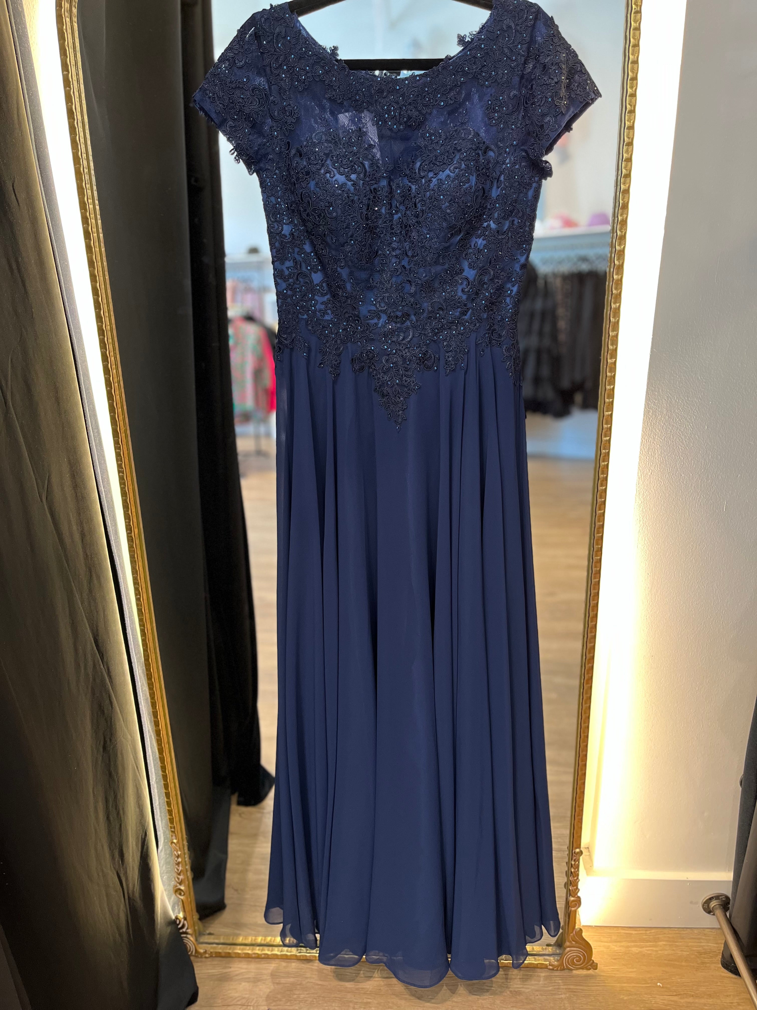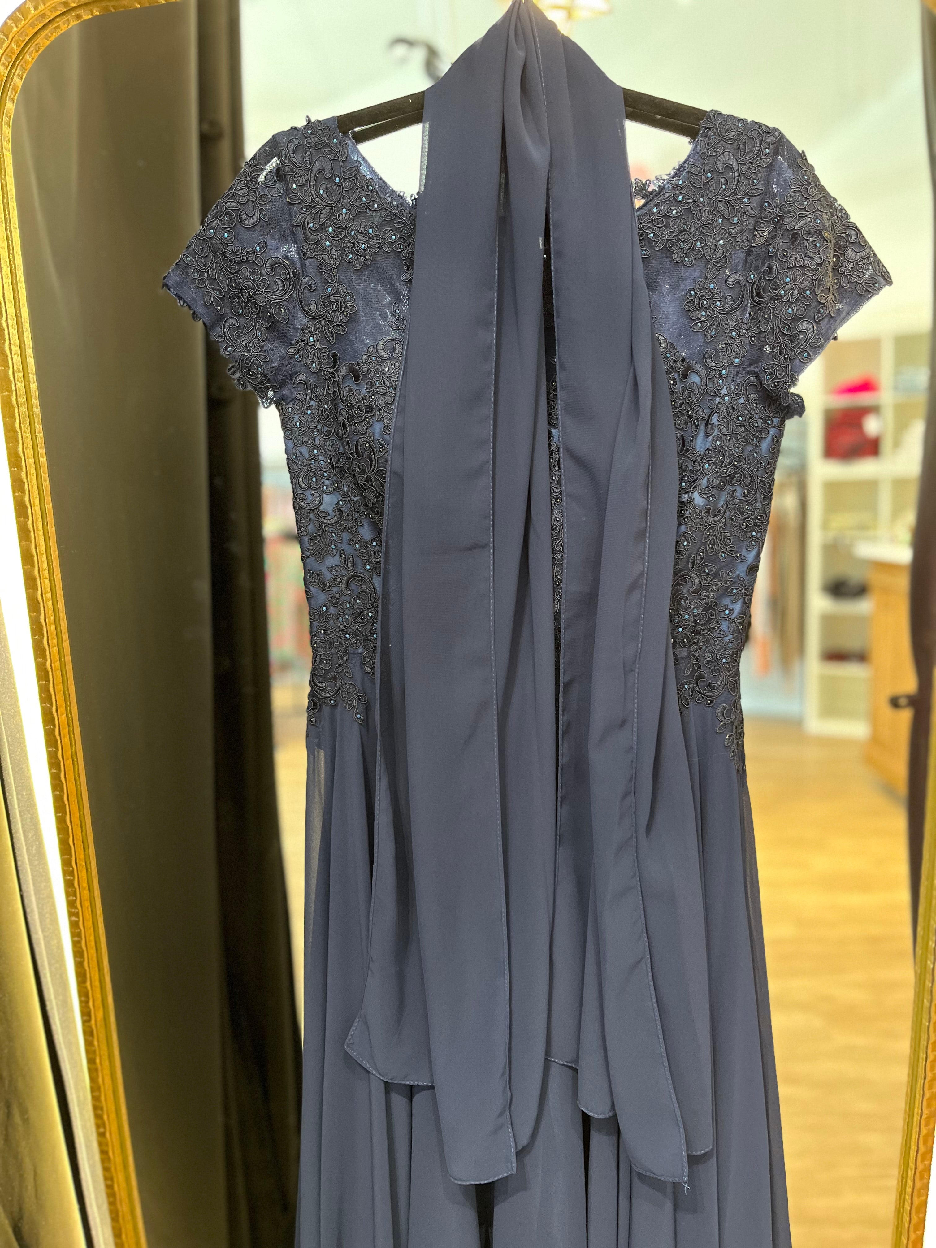 Indulge in luxury with the Adaline Formal Dress. Crafted in a stunning navy hue, this long dress boasts delicate details on the top and comes with a shawl for added elegance. Designed for modesty, it includes bra padding for comfort and covers the shoulders. Make a statement at your next formal event with this exquisite dress!